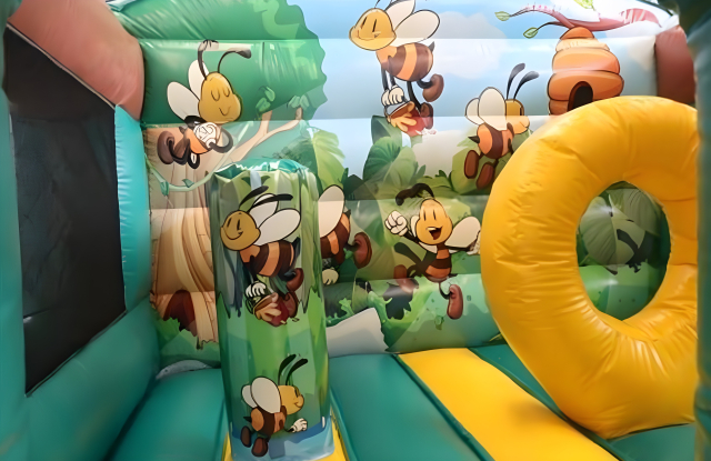 Unsere Superbiene-Hüpfburg bringt kleine Bienenfreunde zum Toben, Hüpfen und Spielen: fröhliche Bienendesigns, bunte Farben und eine integrierte Rutsche sorgen für stundenlangen Spaß. Ideal für Kindergeburtstage, Sommerfeste oder jedes Event, bei dem lebhafte Spielaction auf dem Programm steht!