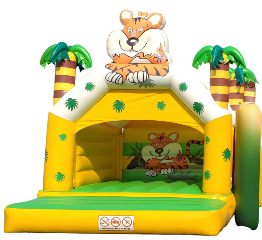 Unsere gelbe Hüpfburg mit markantem Tigerkopf und integrierten Palmen entführt Kinder mitten in den tropischen Urwald: wagemutige Sprünge, tierische Abenteuer und eine fröhliche Dschungel‑Atmosphäre sorgen für unvergesslichen Spielspaß. Ein echtes Highlight für Kindergeburtstage, Vereins‑ oder Sommerfeste, wenn das Motto „Dschungel & Safari“ ganz oben steht!