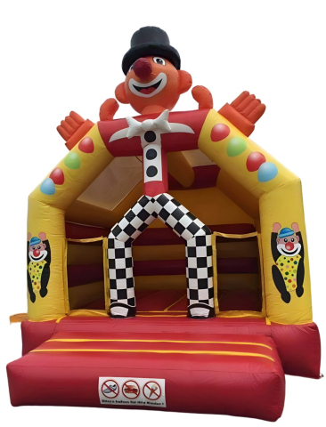 Unsere große Clown-Hüpfburg zieht alle Blicke auf sich: Fröhliche Clown-Motive und kräftige Farben laden Kinder zum Hüpfen, Toben und Spielen ein. Dank des kleinen Eingangs und der sicheren Netze im Frontbereich können Kinder unbeschwert toben – perfekt für Geburtstage, Straßenfeste oder jedes Event, bei dem bunte Stimmung und jede Menge Spielspaß gefragt sind!