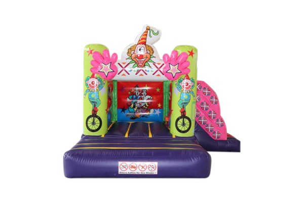 Unsere Crazy Clown Hüpfburg mit Rutsche bringt den Zirkus direkt zu dir – mit bunten Clowns, jeder Menge Luft zum Hüpfen und einer spaßigen Rutsche. Ein echter Hingucker, der Kinder (und Erwachsene) zum Lachen, Toben und Auspowern einlädt!
